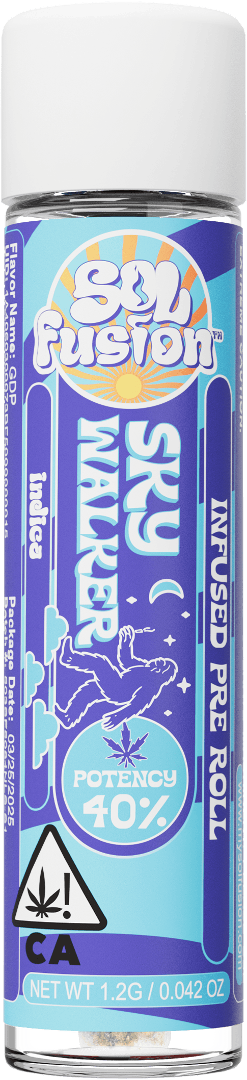 Meet SolFusion. We’re bringing the heat with full-flower Cali cannabis, infused with premium oils and waxes for flavor and over 40% potency that hits hard and stays smooth. Our infused pre rolls shine with a consistent burn, juicy flavor, and straight-up tropical goodness.